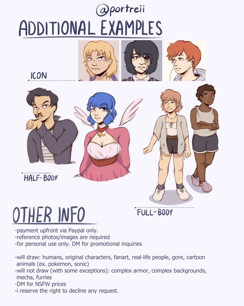 Commission all inquires can be sent via direct message to my twitter. payment is upfront and via paypal only. back