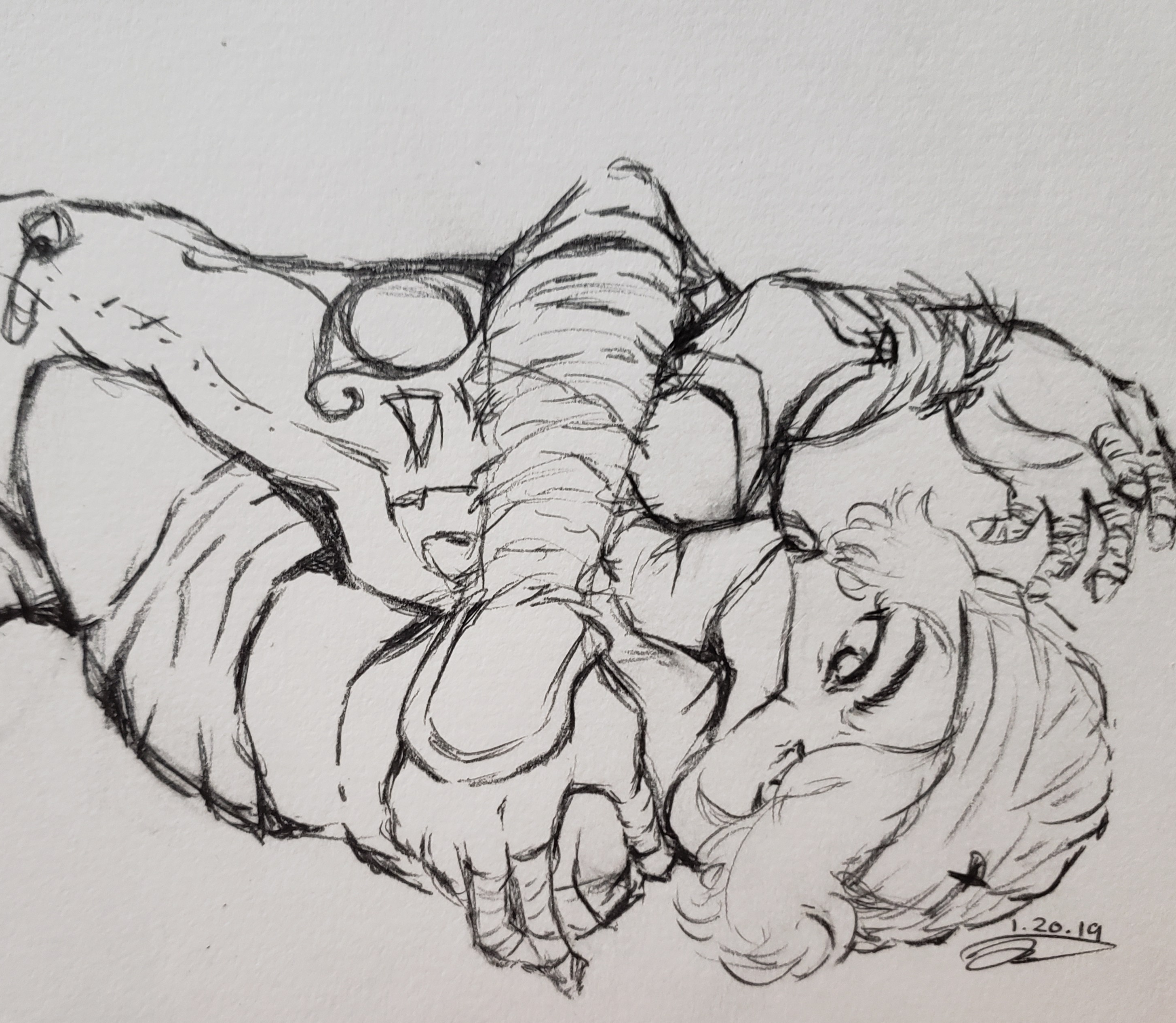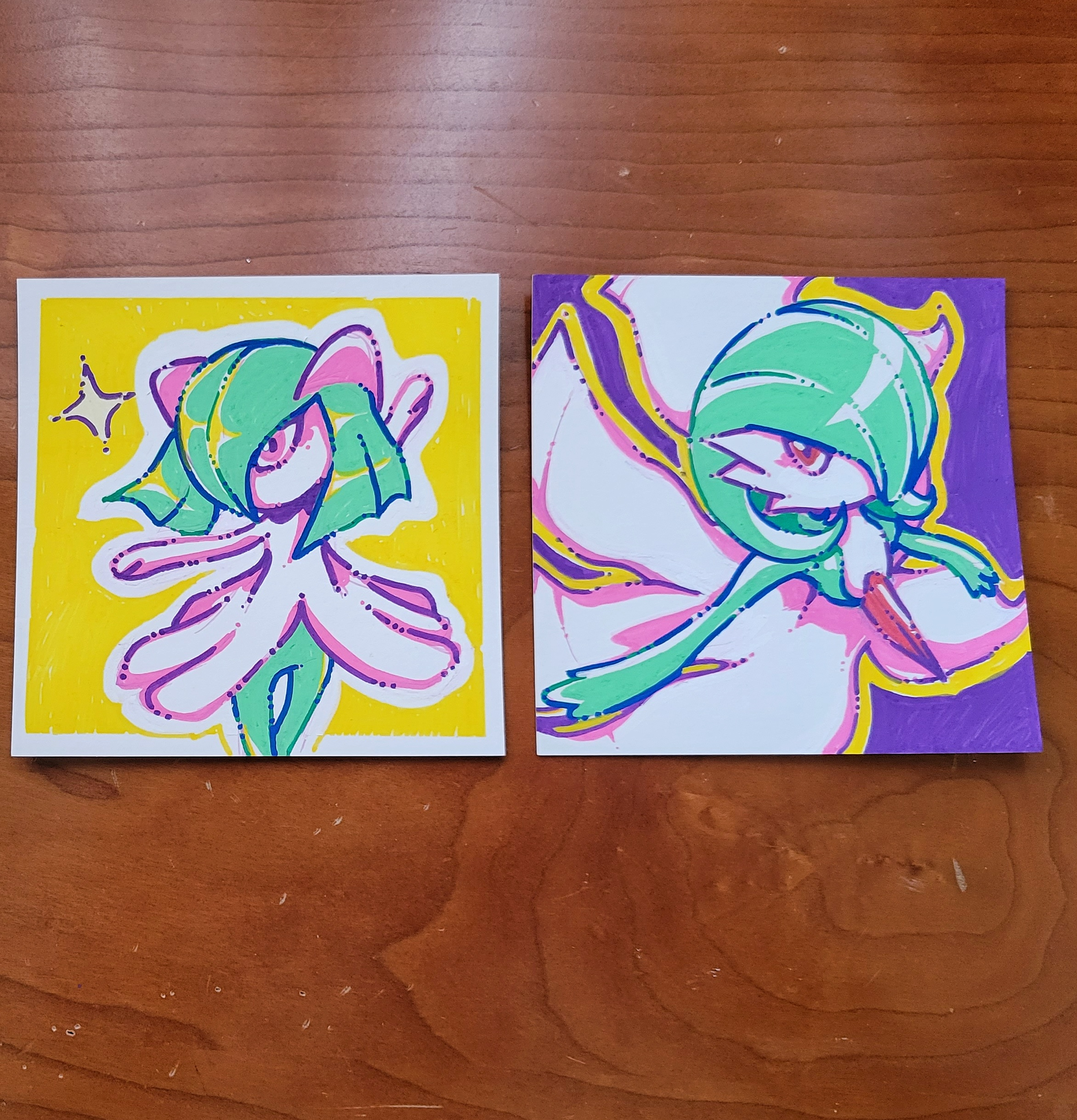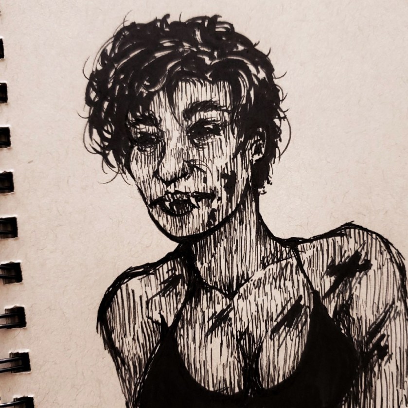 traditional artwork utilizing pen, paint, pencil, and marker.