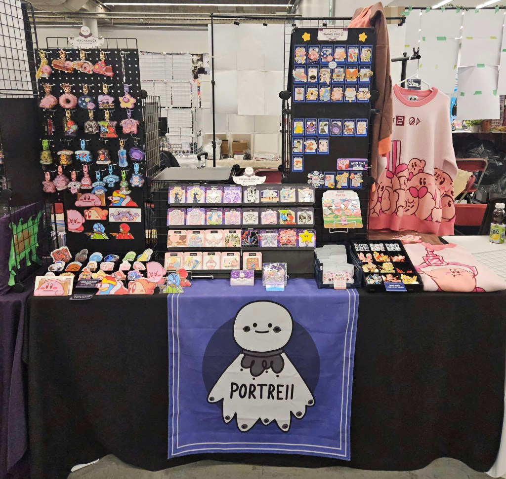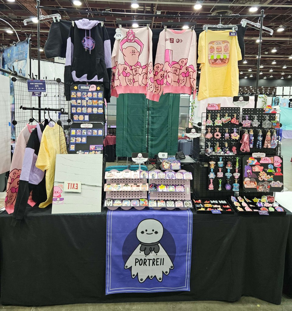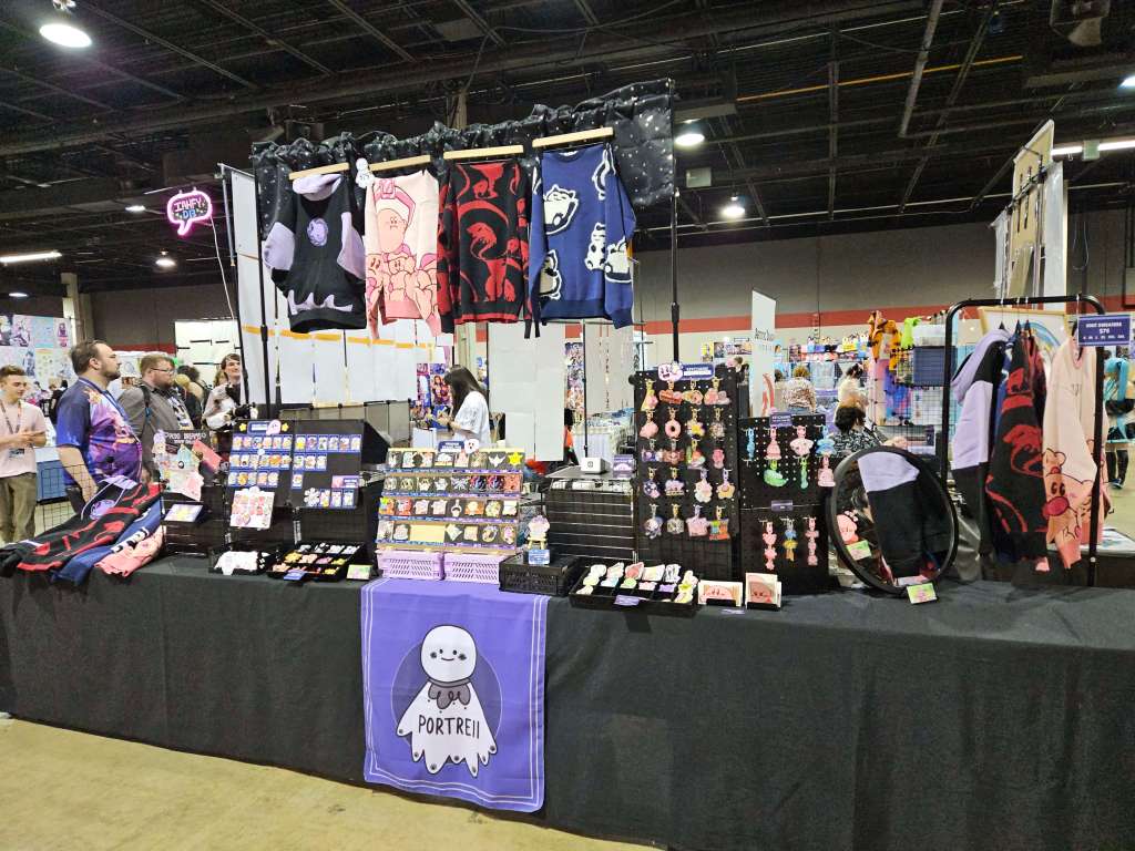 Various artist table display setups featured at previous events (Anime Central, Otakuthon, Youmacon).