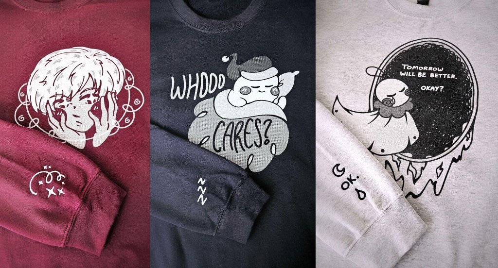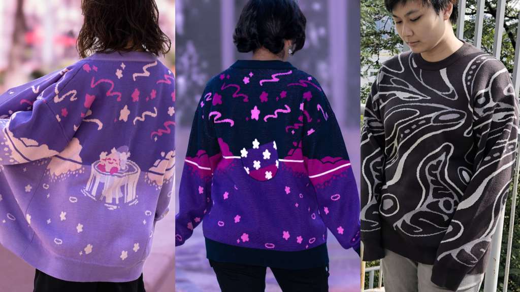 Artist-designed apparel, from tees to cozy knitwear.